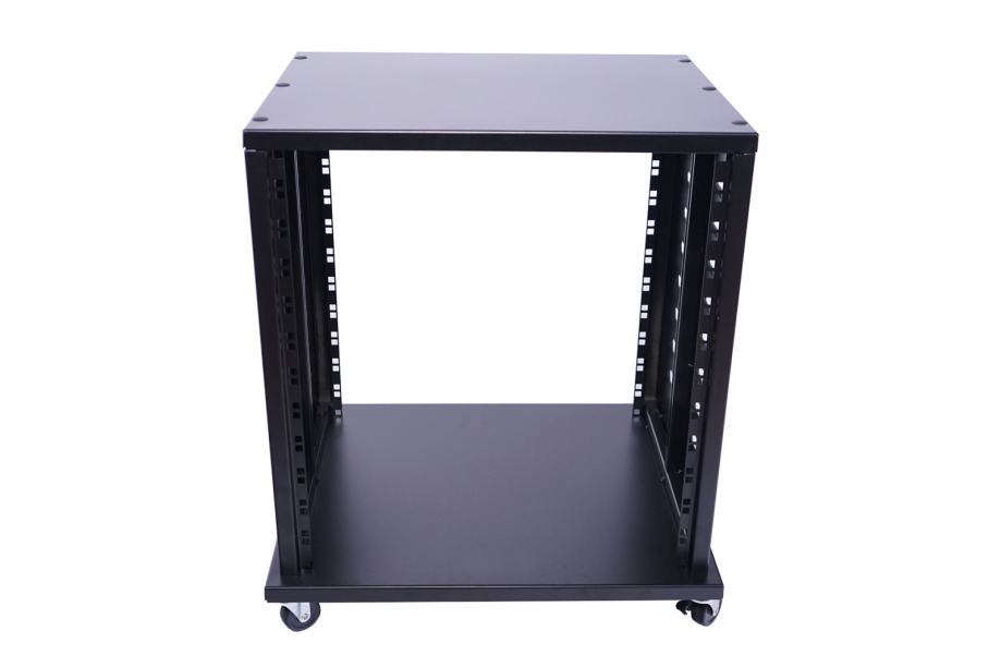 Professional 12U installation Rack, 19" format, robust steel design, Installation depth: 40 cm, base size 56x46cm, top size 53,5x40,5cm, Includes heavy duty brackets on both sides of the middle guide rails of the inner walls,4 Stable casters, installation height 56.7cm