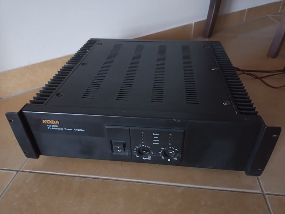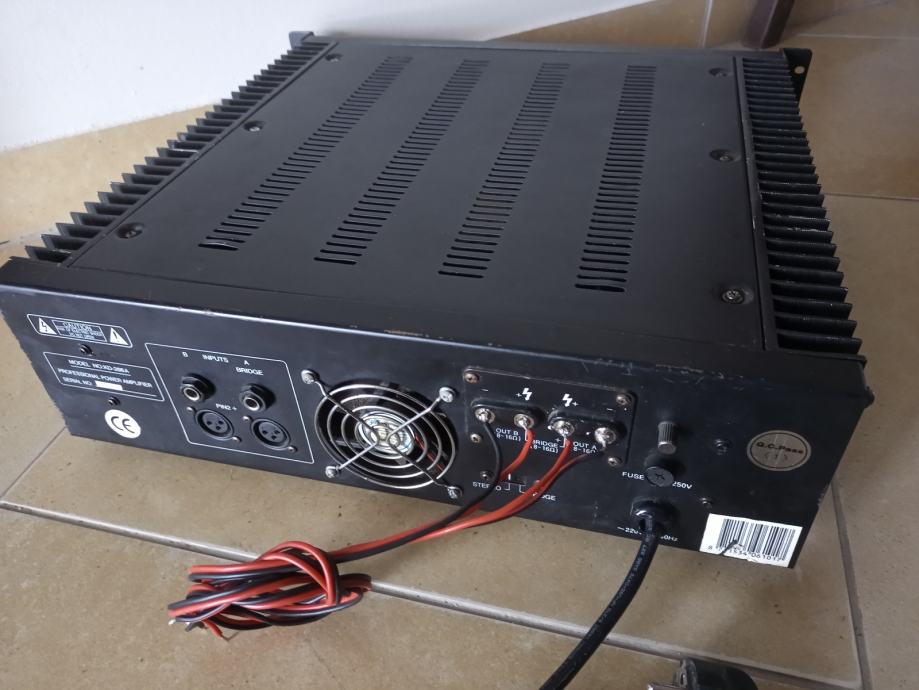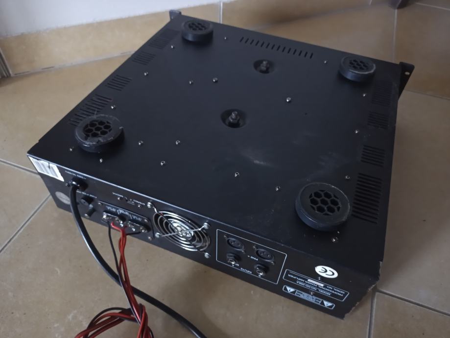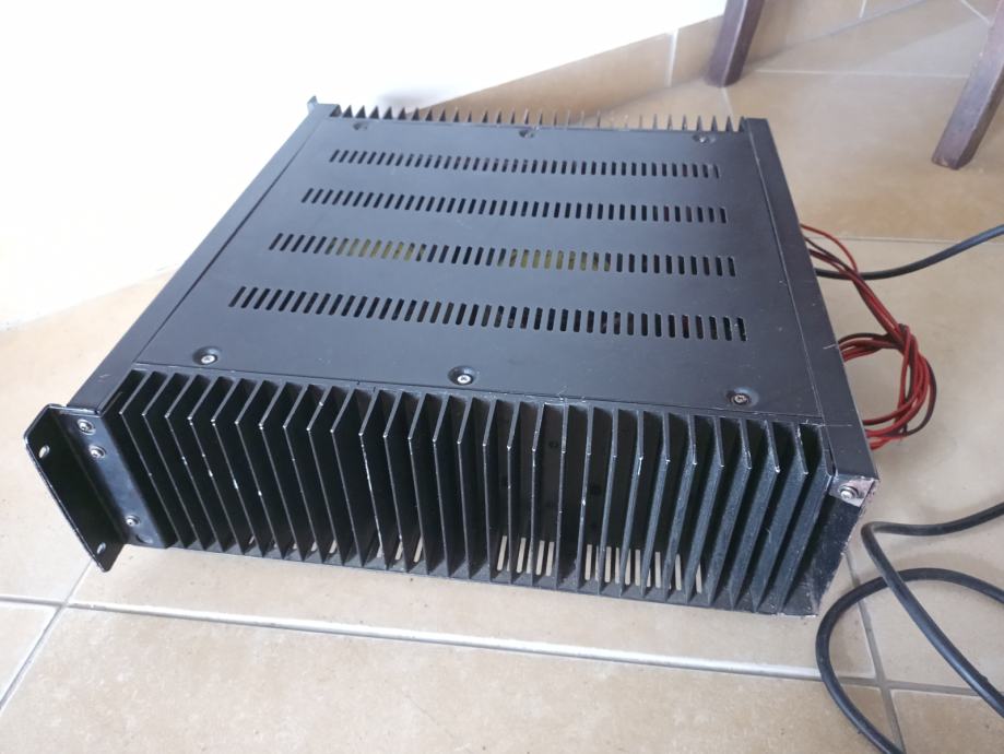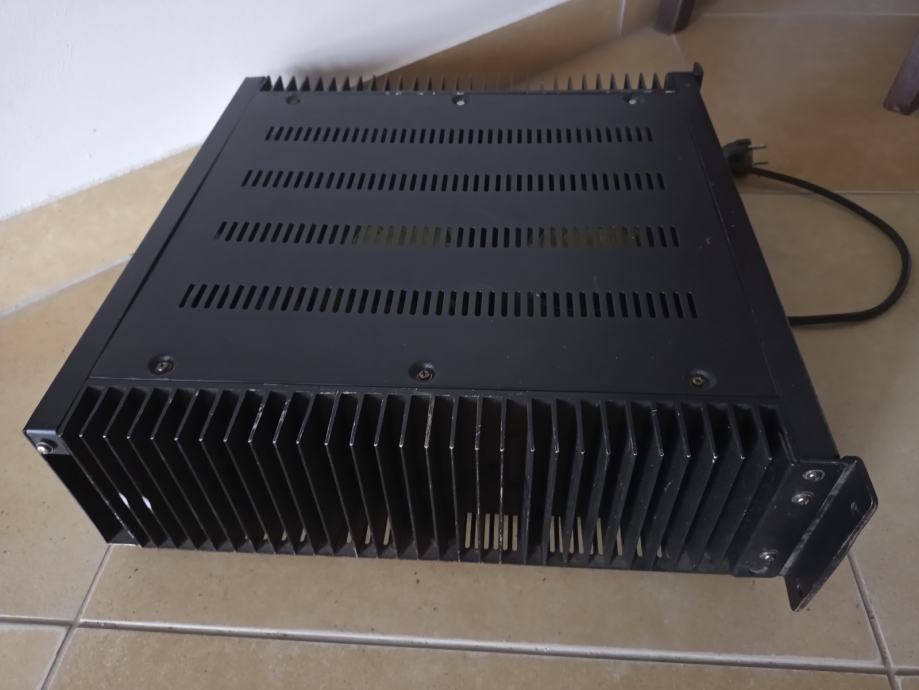 Radi, ispravno je, ali treba zamijeniti terminale za priključenje zvučničkih kablova. Sada su na oštećenim terminalima izravno zalemljeni kablovi. U potenciometre za glasnoću se zavukla mala količina prašine pa se, kod oba gubi kontakt onda kada ih odvrnem do kraja. Dakle, samo kad ih odvrnem do kraja i u prvih 99% hoda potenciometara kontakt je normalan. Osim spomenutih terminala, sve na uređaju je čitavo i bez pukotina, a postoje isključivo površinska oštećenja. Snaga pojačala je 2x200 W pri 8 Ohma ili 2 x 280 W pri 4 Ohma ili 1x400 W pro 8 Ohma ili 1x560W pri 4 Ohma.