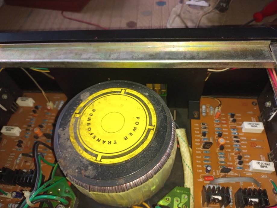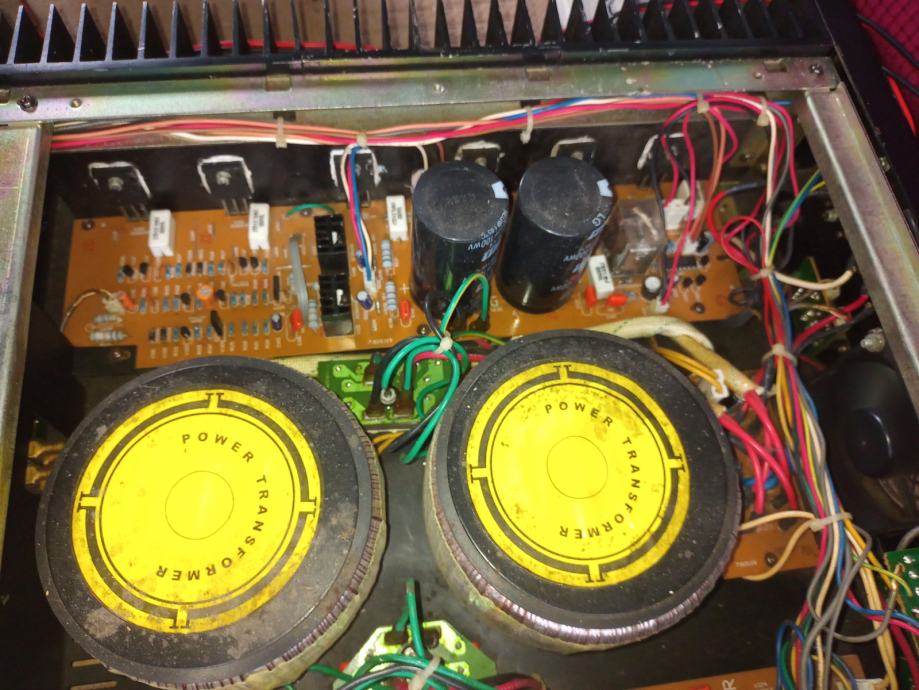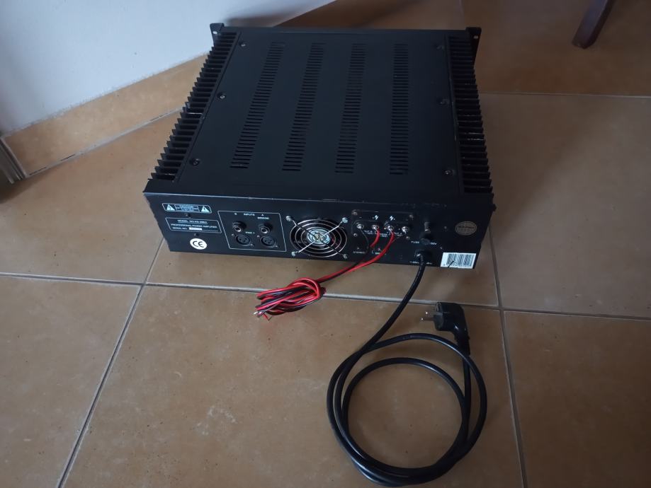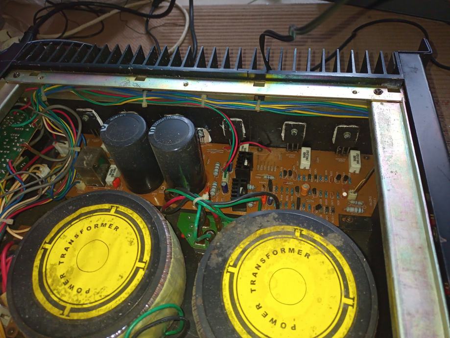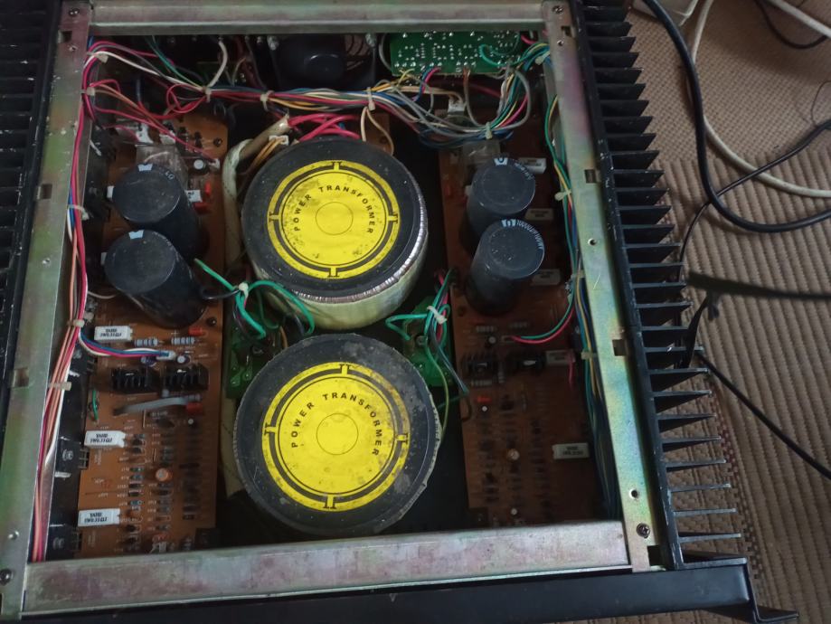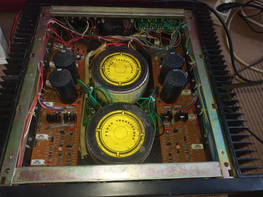 Radi, ispravno je, ali treba zamijeniti terminale za priključenje zvučničkih kablova. Sada su na oštećenim terminalima izravno zalemljeni kablovi. U potenciometre za glasnoću se zavukla mala količina prašine pa se, kod oba gubi kontakt onda kada ih odvrnem do kraja. Dakle, samo kad ih odvrnem do kraja i u prvih 99% hoda potenciometara kontakt je normalan. Osim spomenutih terminala, sve na uređaju je čitavo i bez pukotina, a postoje isključivo površinska oštećenja. Snaga pojačala je 2x200 W pri 8 Ohma ili 2 x 280 W pri 4 Ohma ili 1x400 W pro 8 Ohma ili 1x560W pri 4 Ohma.