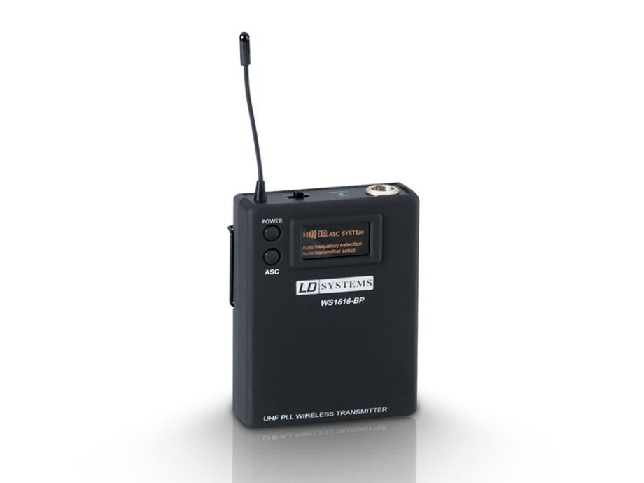 Predajnik tzv. “body-pack” za gitaru, mikrofon lavalier ili slušalice s tropinskim mini XLR priključkom. Odlikuje ga jednostavno rukovanje i mogućnost podešavanja 16 kanala. Ima odvojeno podesivu razinu za gitare s visokom impedancijom i dvije razine mikrofona za optimalno prilagođavanje. Indikator ukazuje na nedovoljno pune baterije. Može raditi do 12 sati s dvije baterije AA. Metalna kopča omogućuje profesionalno pričvršćivanje na remen, džep itd.