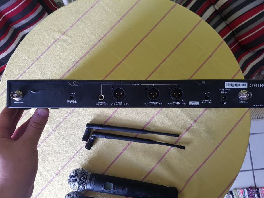 Prodajem navedeni bezicni sistem s duplom bazom i pripadajucim mikrofonima. Sistem je koristen u tamburaskom bendu i pokazao se jako dobrim, no bend prelazi na naglavne mikrofone tako da je ovo visak. Stanje 7/10. Kupljeno prosle godine u 5.mjesecu. Ako ste ozbiljni kupac cijena se moze korigirati!