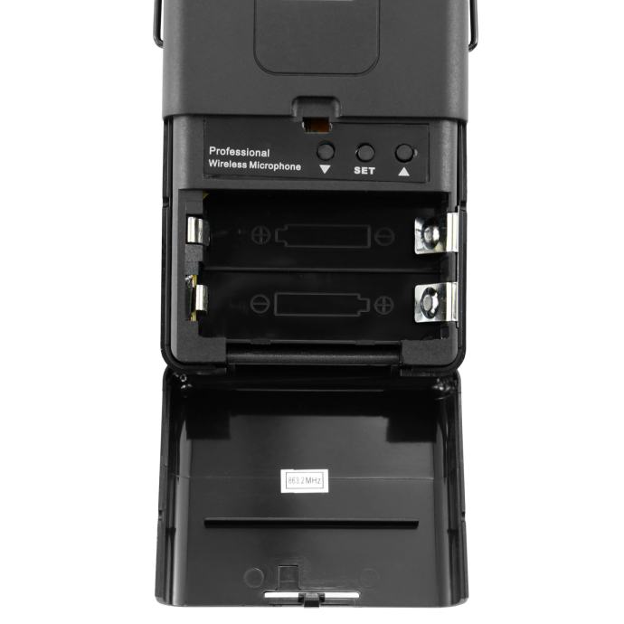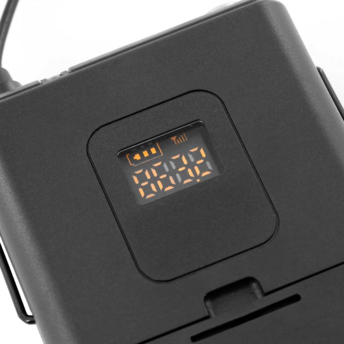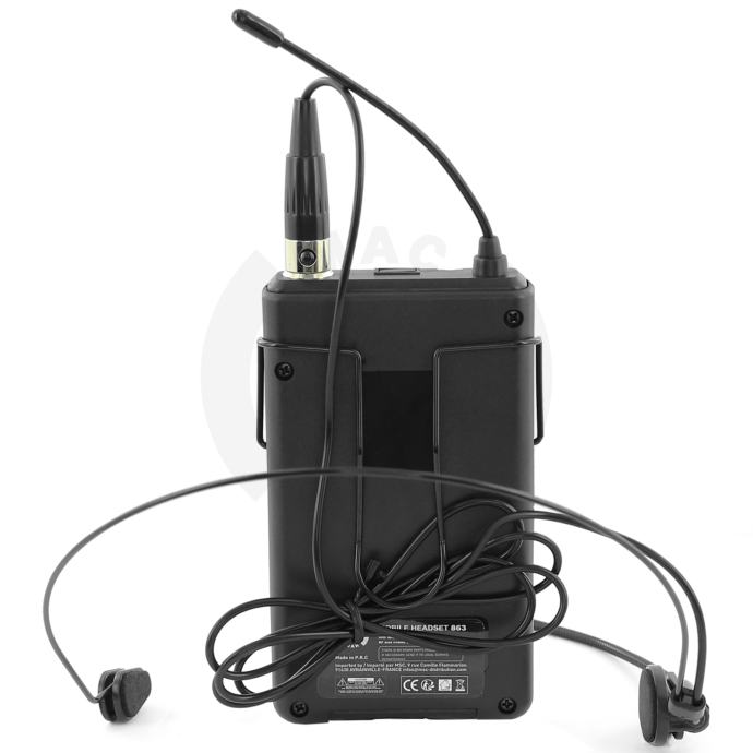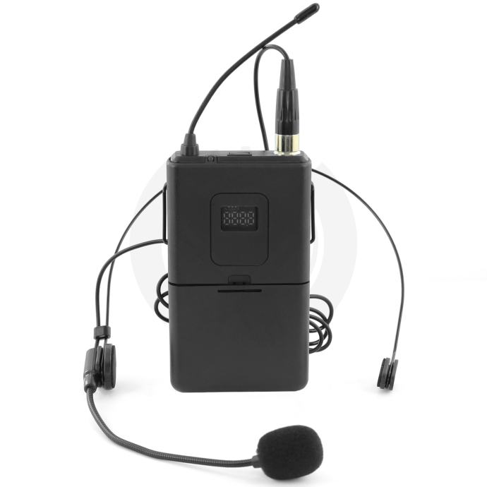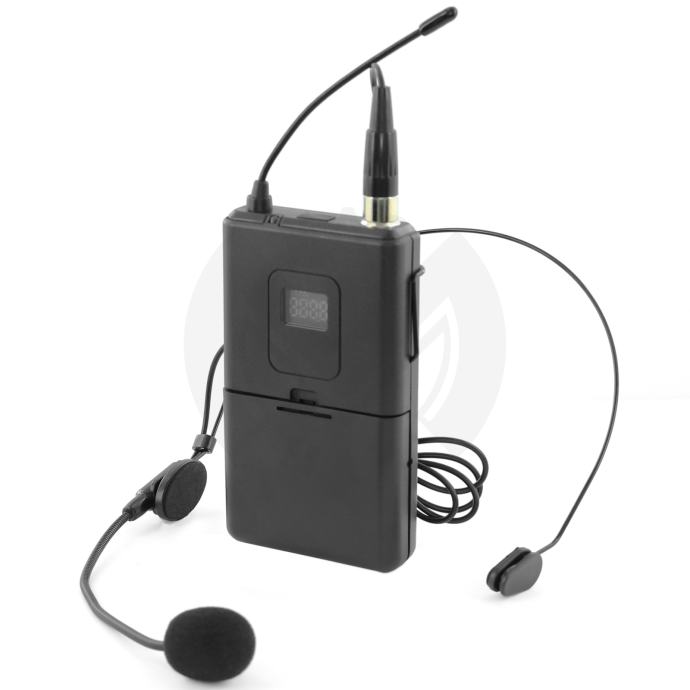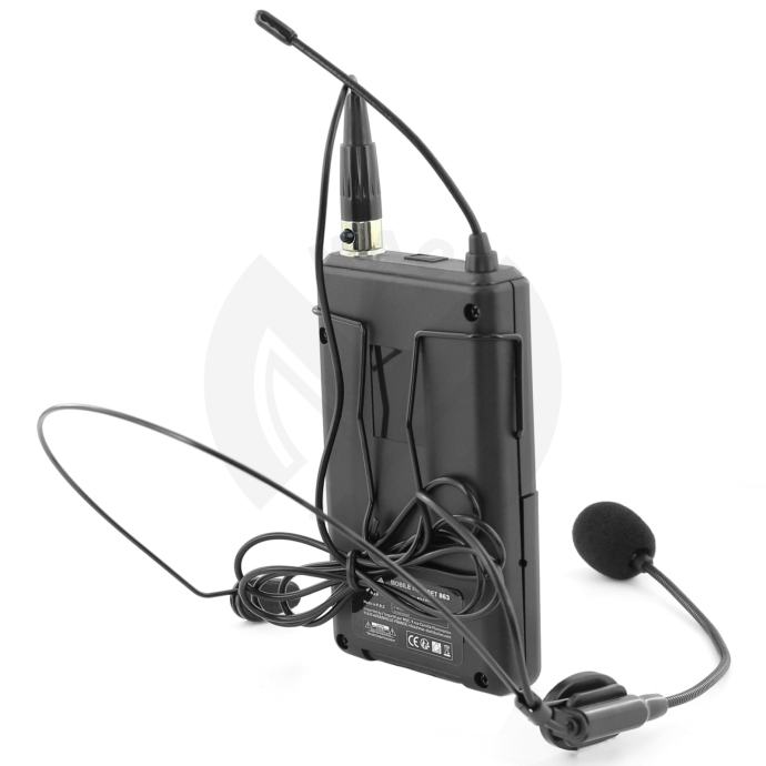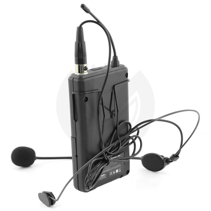 Mikrofon s trakom za glavu i njegov odašiljač.