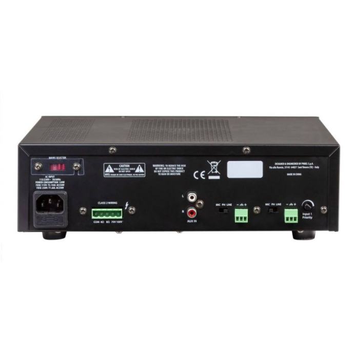 Proel PA AMP35E 35W professional Desk mixer amplifiers, overload/short-circuit protection, Bass and Treble tone controls, 2 Balanced inputs with MIC/MIC Phantom/LINE selection, AUX Line RCA Input, MIC 1 Input with priority