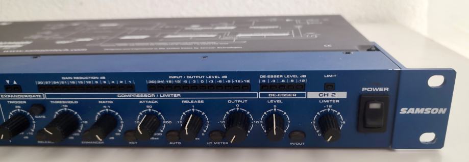 Each channel features a wide range of variable control. A feature-rich Compressor section includes variable Threshold, Ratio, Attack and Release controls. Samson's SKD (Smart Knee Detector) circuit dynamically adjusts the compression curve to ensure a musical result. Our exclusive AEG (Auto Envelope Generator) function simplifies optimum settings by constantly analyzing the audio input and automatically adjusting the attack and release parameters based on the changing level. Key Inputs and Outputs are included for externally processing the control voltage.