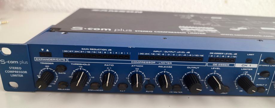 The S-com plus is a highly adaptable stereo compressor/limiter in an efficient single rackspace design. It is intended for situations where extra flexibility is required to optimize signal levels by delivering essential control along with simplicity of operation. S-com plus's comprehensive and wide-ranging controls provide extensive manipulation of audio dynamics, even in the most complex situations.