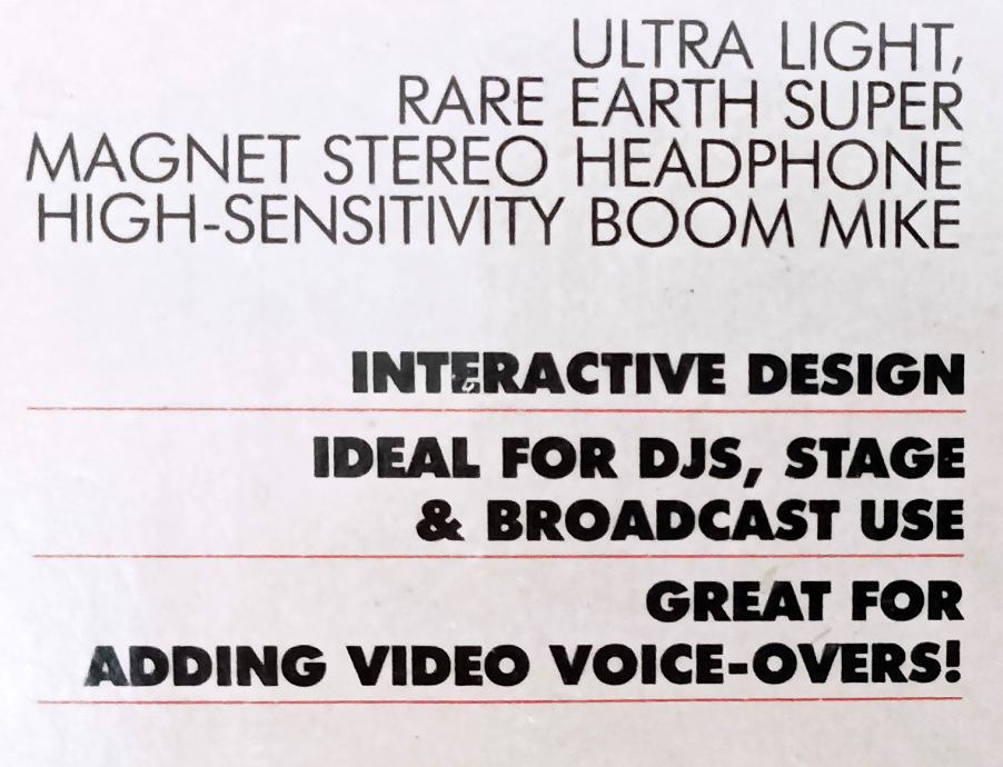 Naglavni mikrofon sa jednom slušalicom (zbrojena oba stereo kanala). Kompatibilno sa DJ i razglasnim miksetama (6,3 jackovi)