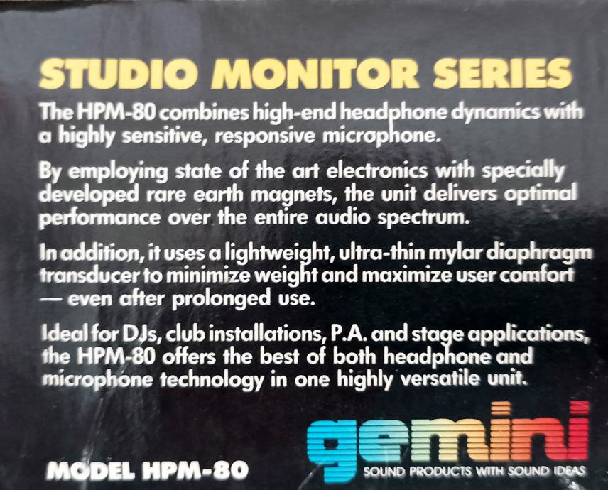 Slušalica sa mikrofonom, Gemini Studio Monitor Series Model HPM-80