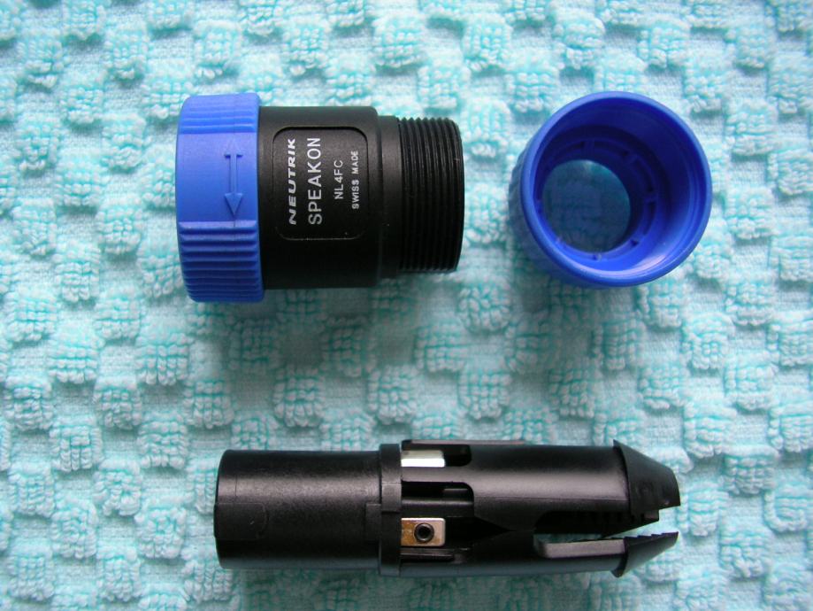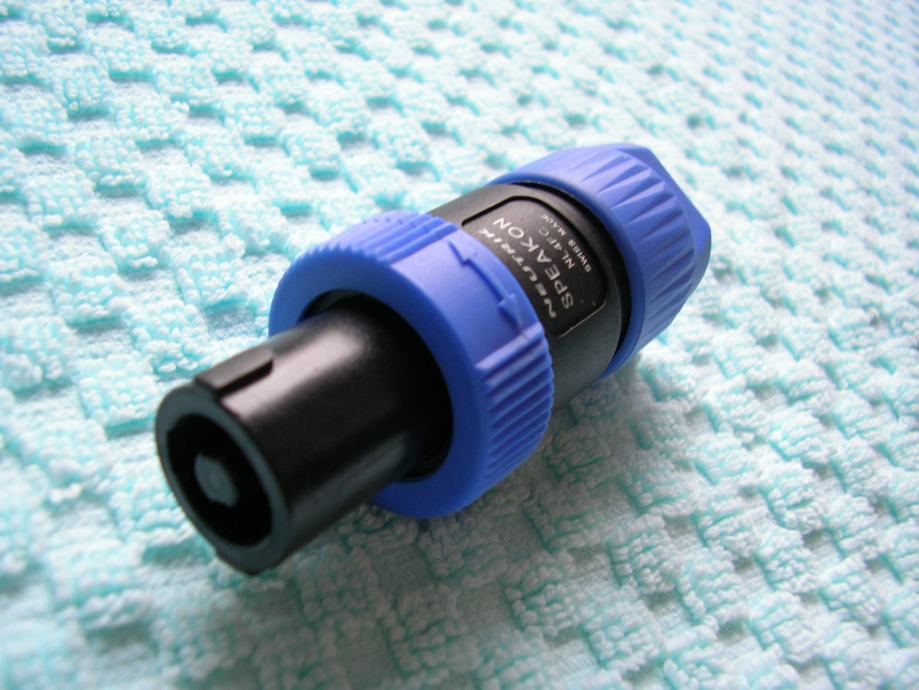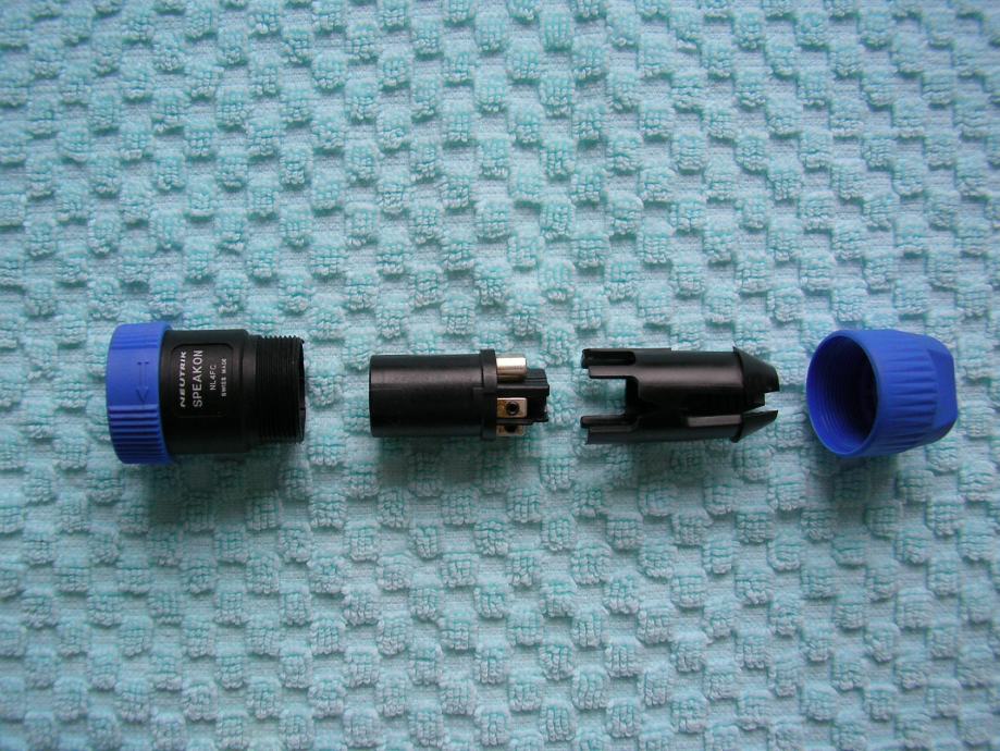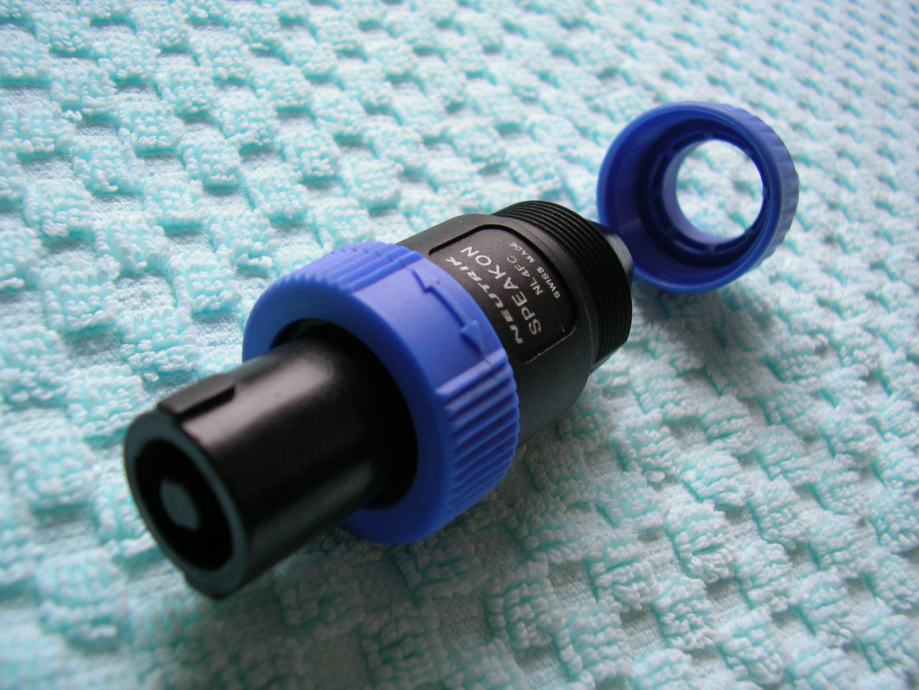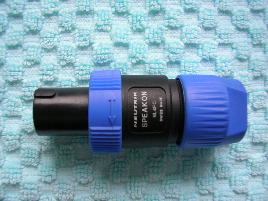 • 4-pinski muški univerzalni, speakon konektori (pričvrščivanje žica na vijak)