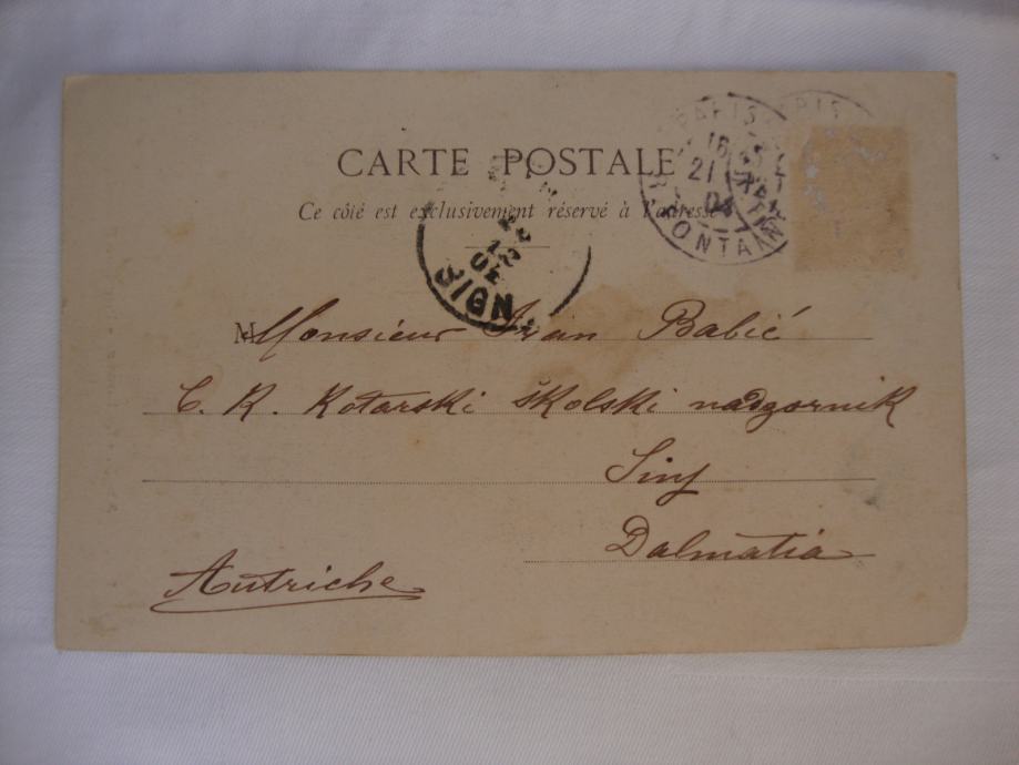 Stra francuska dopisnica putovala 1904. godine za Sinj