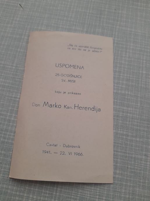 uspomena 25. godišnjice sv. mise koju je prikazao don marko kan. herendija cavtat- dubrovnik 1941- 22.VI.1966, vidi slike