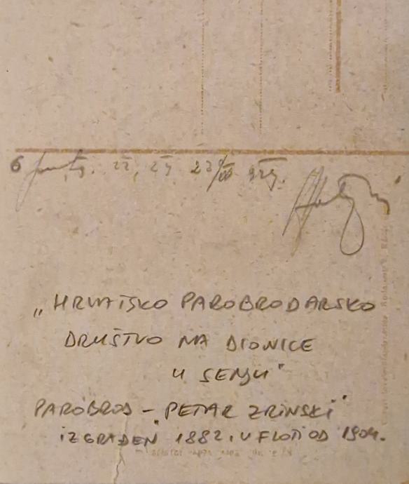 A-U razglednica Parobrod Petar Zrinski Parobrodarsko društvo Senj