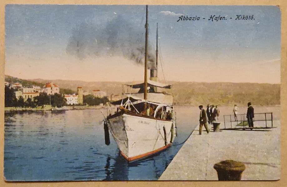 Odlično očuvana, riva Abbazia, Oolpatija, Fiume, Rijeka, Na poleđini text o povijesti broda..