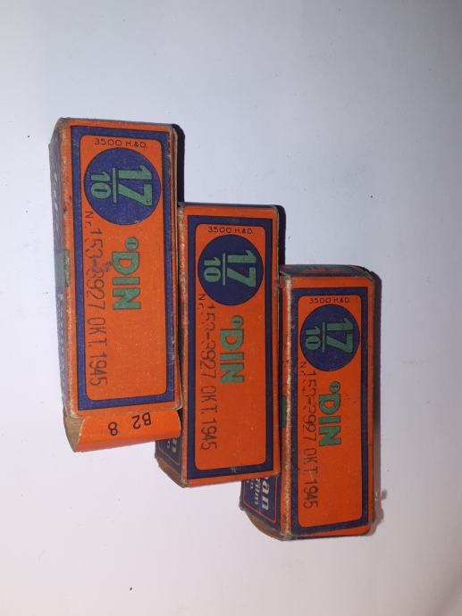 Prodajem tri komada filma ISOPAN AGFA u originalnom pakiranju neotvarani i nerazmotavani . Datum proizvodnje se vidi na slikama OKT 1945, VRLO RIJETKI primjerci u ovako dobrom i očuvanom stanju.