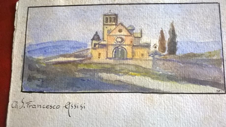 akvarel razglednica - CR,S, Francesco assisi