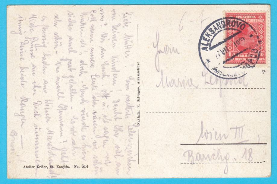 Putovala 1923. godine (?) - poštanski žig se ne vidi najbolje.