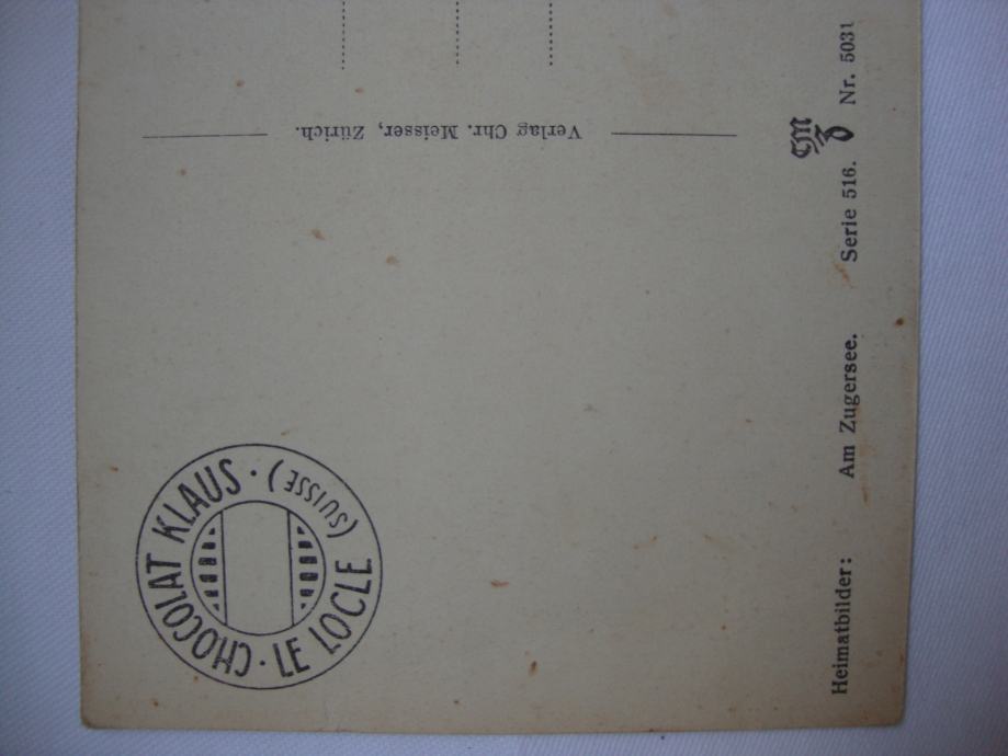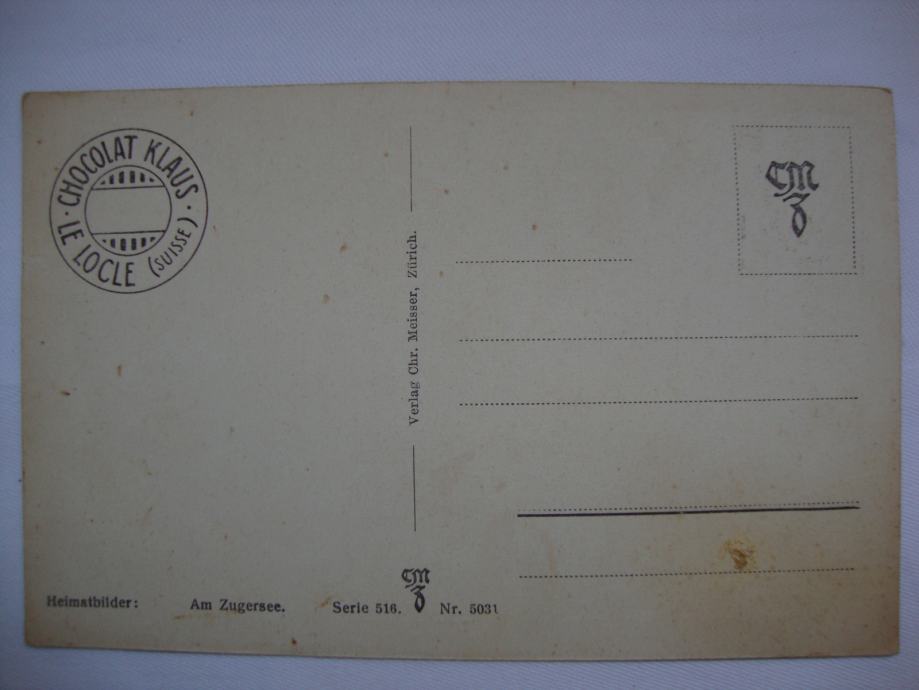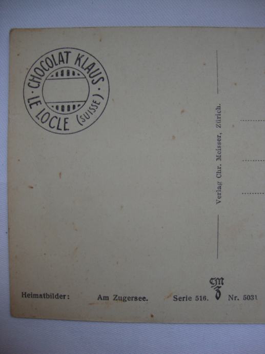 AM Zugersee , old postcard - Le locle Chocolat Klaus SUISSE-DOPISNICA