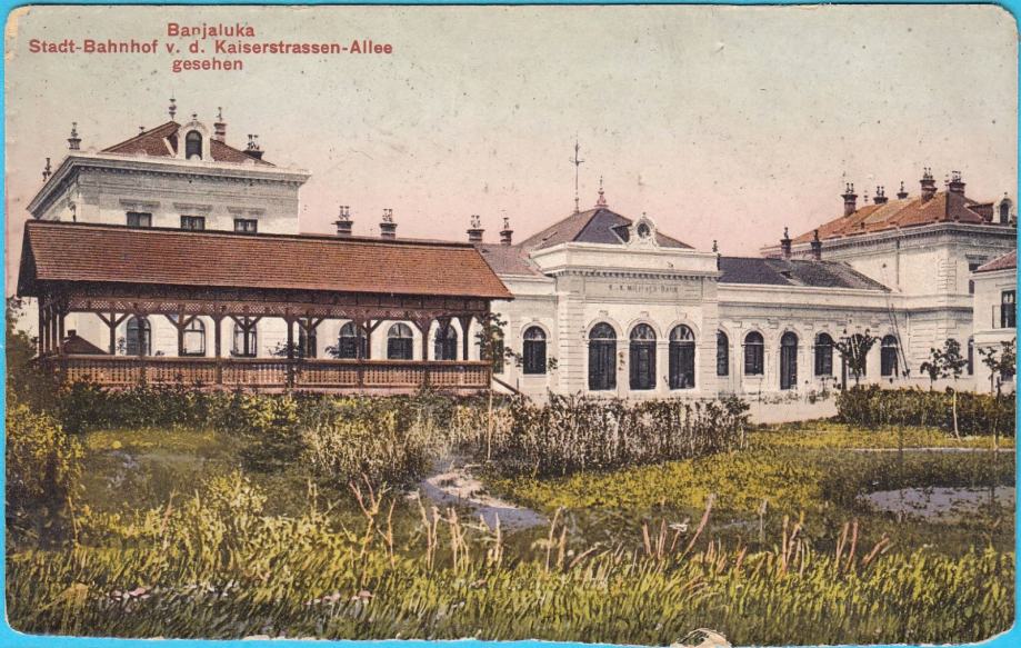 Kolodvor u Banja Luci (Bosna i Hercegovina) stara austro-ugarska razglednica.