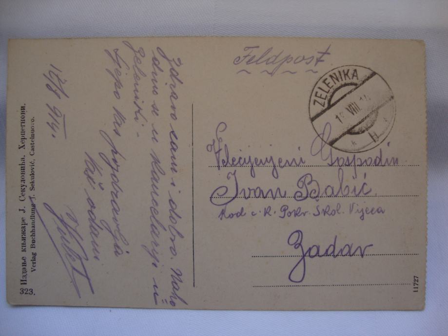 Dopisnica iz 1914. godine Baošić -Crna Gora putovala FELDPOST ZELENKA 1914. godine za Zadar
