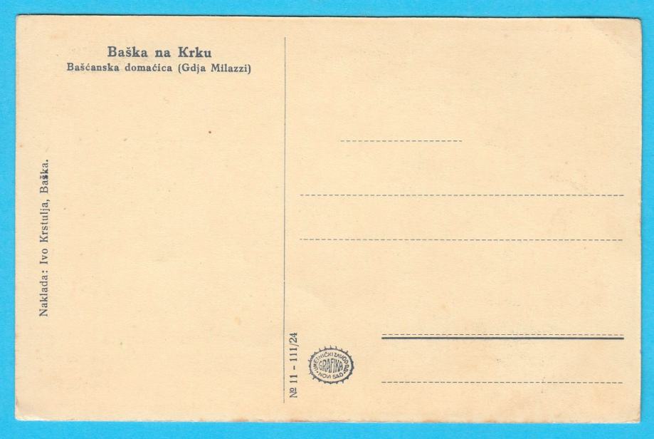BAŠKA ( otok Krk ) - Bašćanska domaćica ( Gdja Milazzi ) * I. Krstulja