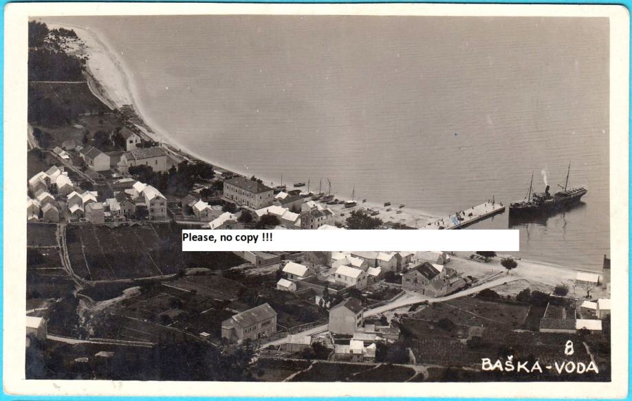Lijepa, vrlo zanimljiva stara predratna razglednica Baške Vode iz 1930-tih godina - Parobrod u luci.