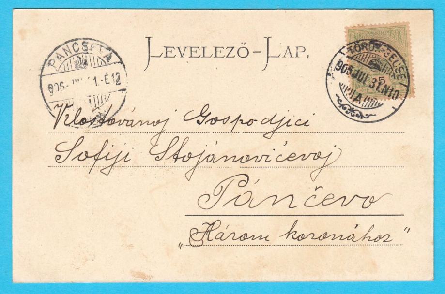 Prekrasna stara razglednica Novog Bečeja (mađ. Torokbecserol), putovala 1906. godine u Pančevo.