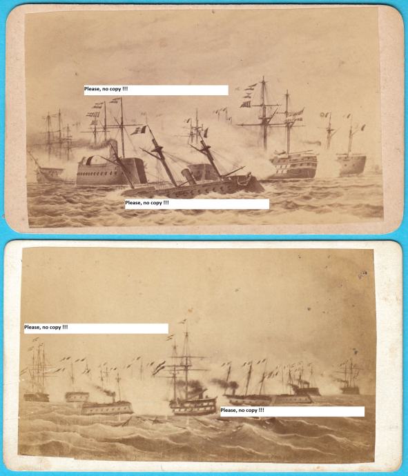 Lot od 2. stare originalne CDV fotografije čuvene Viške bitke (kod otoka Visa) iz 1866. godine između ratne mornarice Austrijskog Carstva i ratne mornarice Kraljevine Italije.