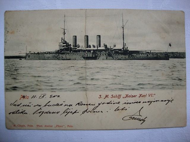 6. S.M. SCHIFF "KAISER KARL VI.! - 1899. g. M.Clapis , POLA ,atelire Flora" - 1900. putovala