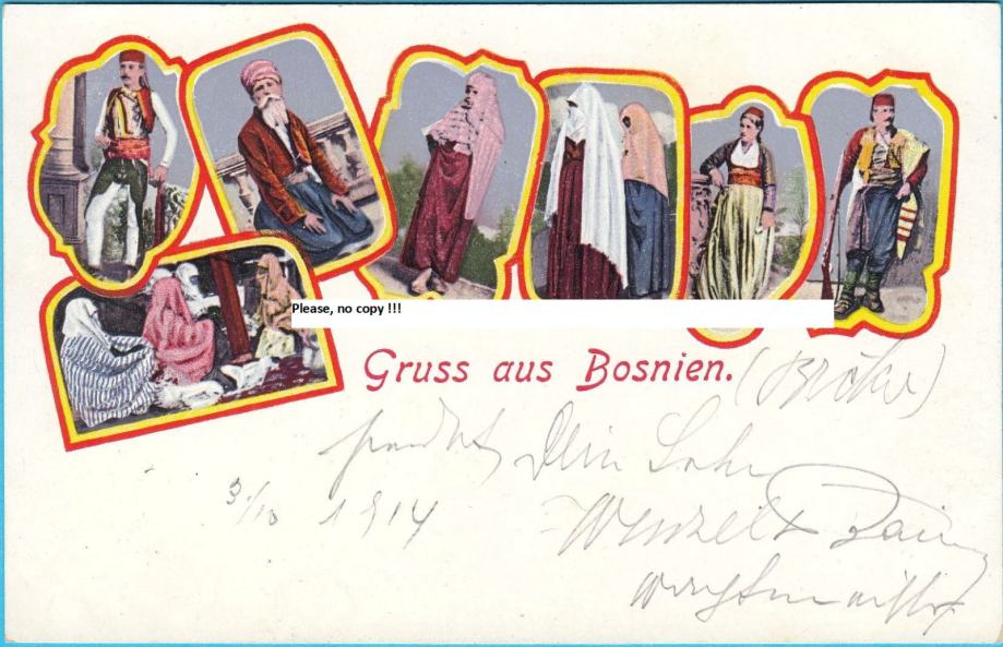 BOSNA I HERCEGOVINA Narodne nošnje - stara razglednica * Gruss Litho