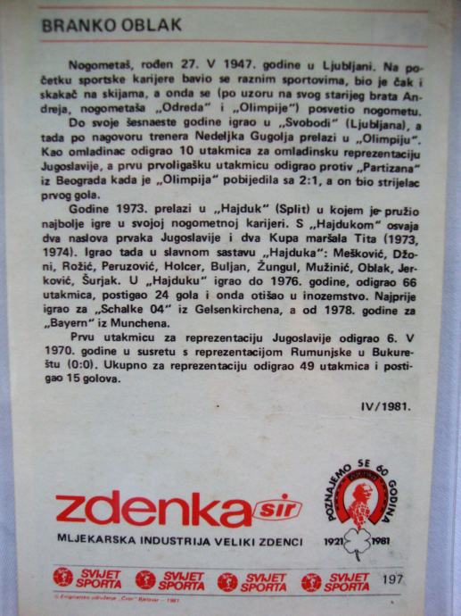 BRANKO OBLAK - HAJDUK 1981.