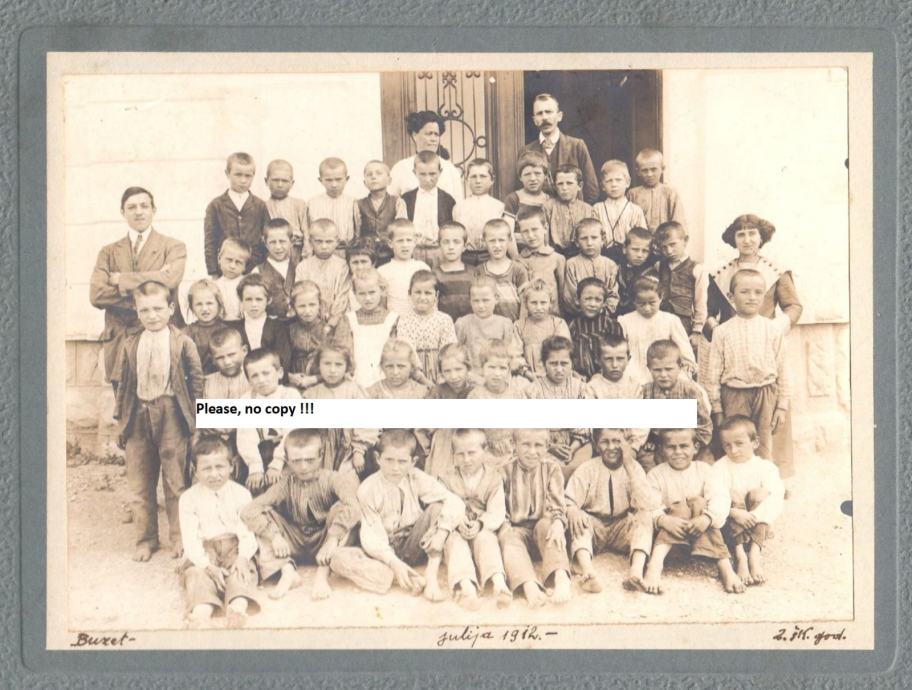 Učenici i učitelji pučke škole u Buzetu (talij. Pinguente) iz davne 1912. godine.