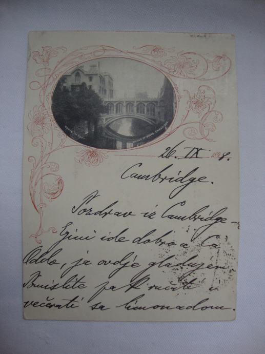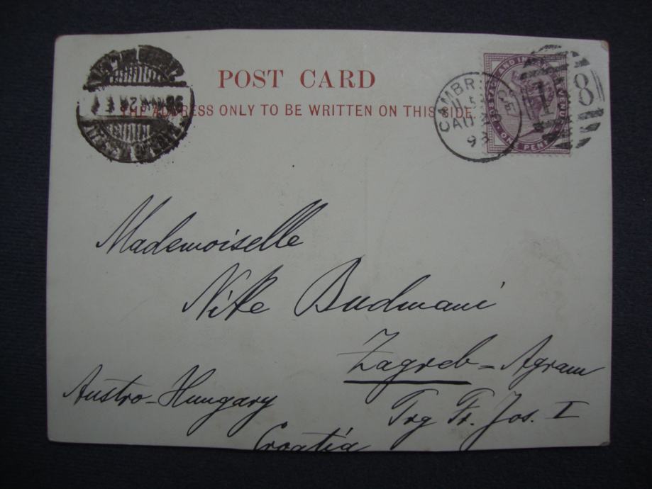 Stara 118 godina dopisnica Cambridge putovala iz Engleska za Zagreb 3 žiga markica