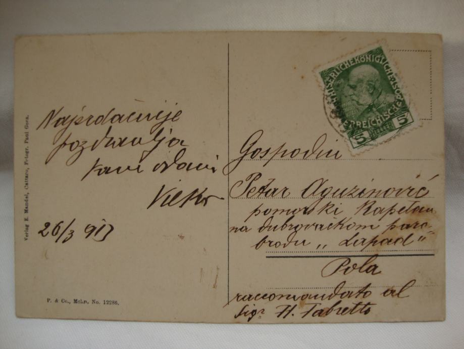 Rijetka dopisnica Crne Gore putovala za Pola (Pulu)1913.godine