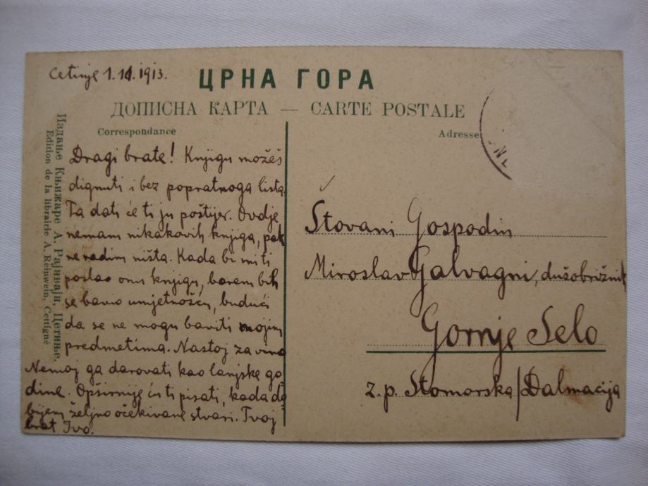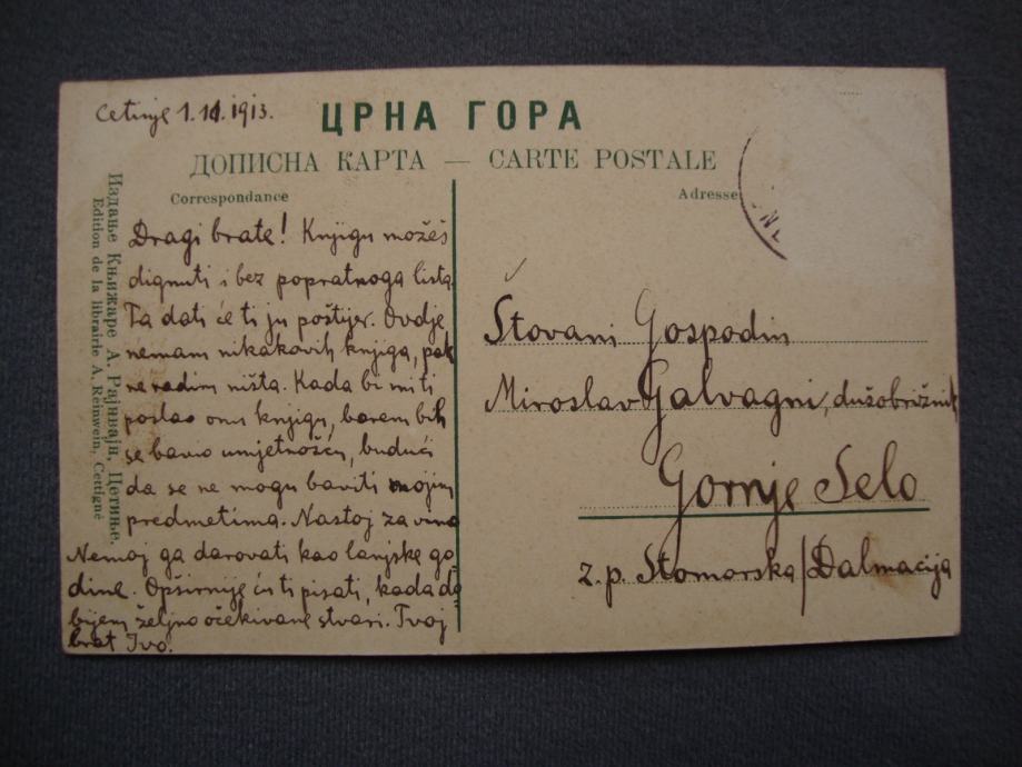 Dopisnica CRNE gore iz 1913. god. Dom Kraljevske vlade - putovala za otok Šoltu