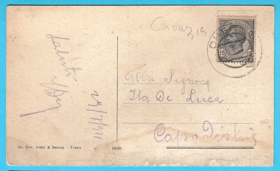 Vrlo lijepa stara razglednica Cresa, putovala 1921. godine u Koper (Capo Distria).