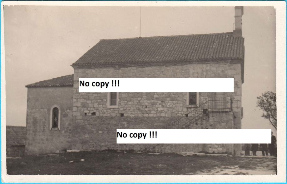 Stara originalna foto razglednica Crkve Gospa od Pomišljaja na brdu Pomišljaj (156.m) u Bilicama kod Šibenika.