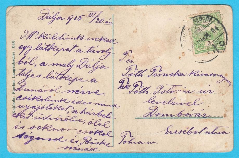 Vrlo lijepa stara austro-ugarska razglednica Dalja, putovala 1915. godine u Dombovar (Mađarska).