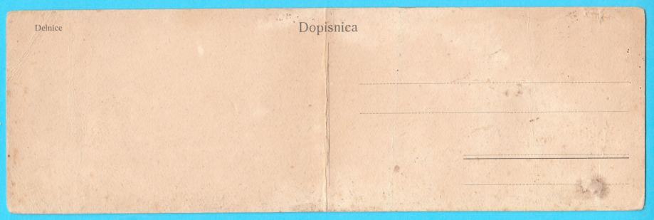 Dvodjelna, dvostruka (preklopna) stara razglednica Delnica.