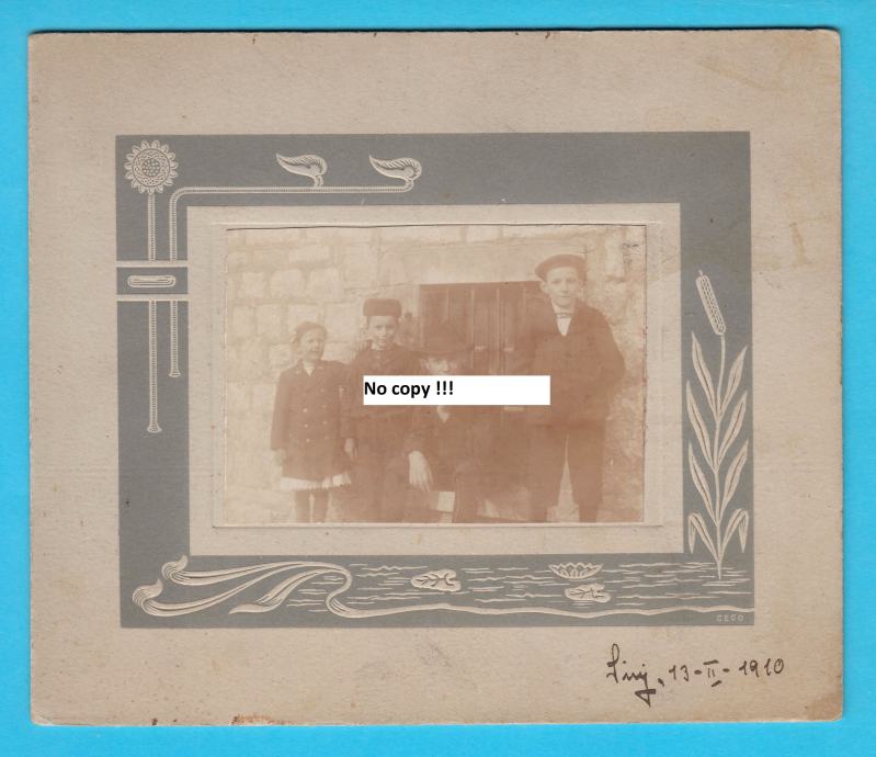 Prekrasna stara kartonska fotografija (kartonka) iz Sinja iz davne 1910. godine. Karton je urešen predivnim reljefnim ornamentima.