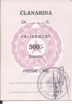 DO000217 Članska Iskaznica Nogomet Hajduk Split (iz doba Jugoslavije)