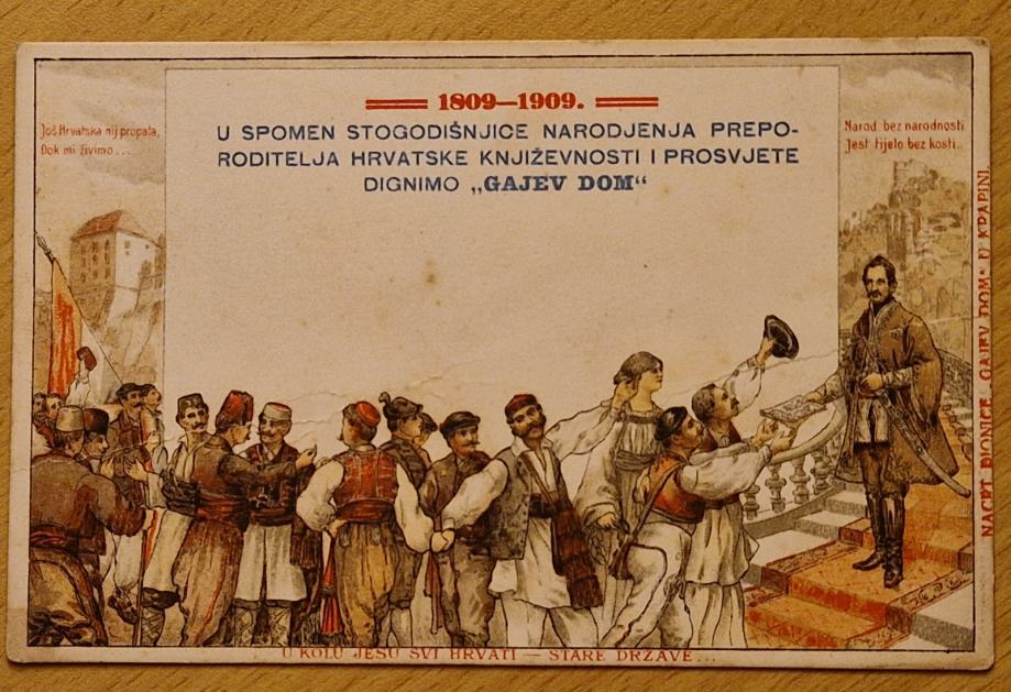 Domoljubna razglednica 1809-1909 Za Gajev dom Sto godišnjica rođenja