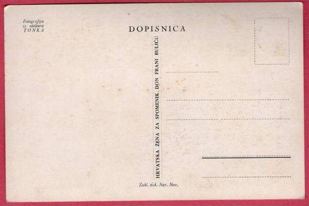 Stara predratna razglednica - "Hrvatska Žena" za spomenik Don Frani Buliću.