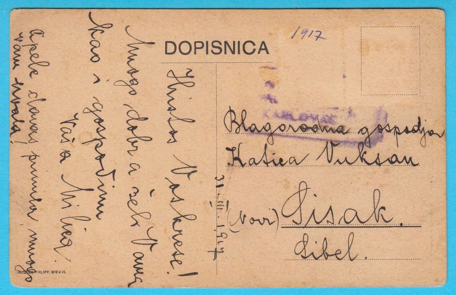 DONJI LAPAC (Lika) stara razglednica, putovala 1917. godine RRR