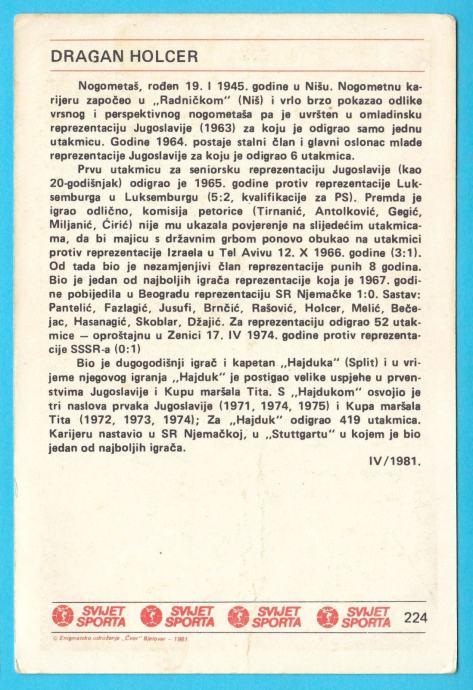 Dragan Holcer - NK Hajduk Split - stara ex Yu kartica svijet sporta