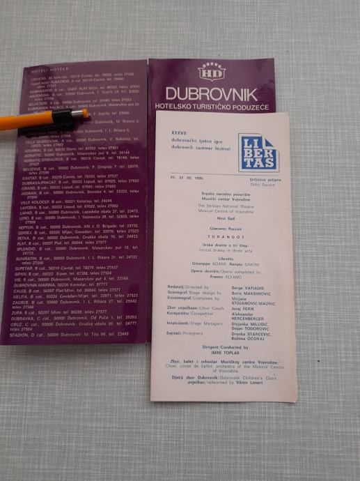 prospekt dubrovačke ljetne igre program 20.-22.8.1986,dubrovnik