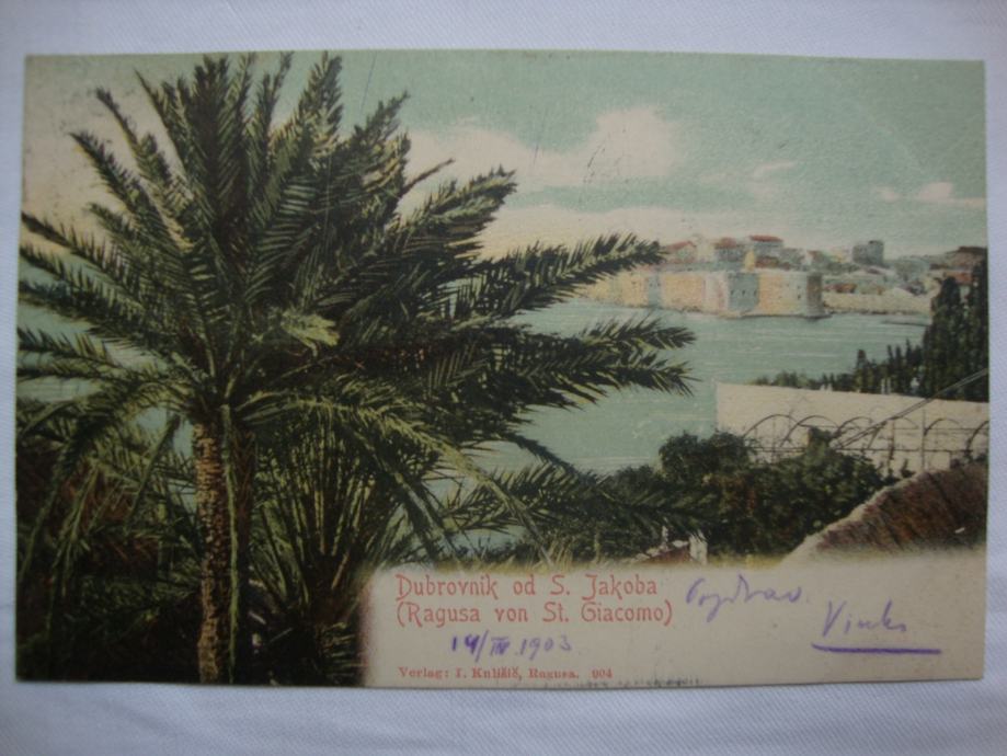 Dubrovnik od S. Jakoba postcard 1900. Razglednica Dubrovnik putovala
