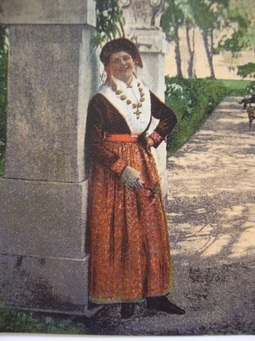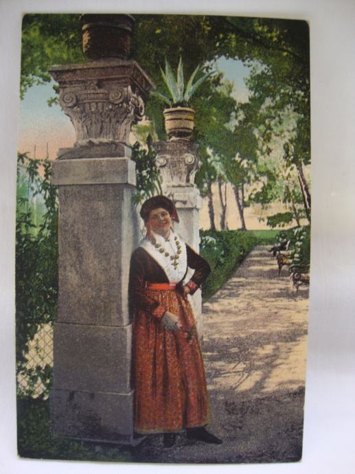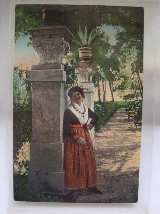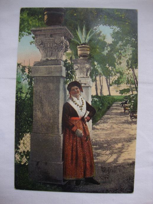 Stara dopsinica iz zbirke dubrovnik na starim razglednicama motiv sa dubrovčankom u narodnoj nošnji i kolarinom tradicijskim nakitom izrađivanog u Dubrovniku