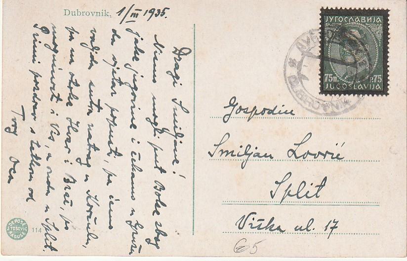 DUBROVNIK PUTOVALA 1935 U SPLIT