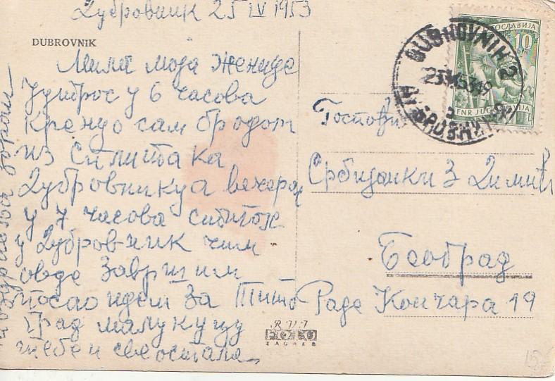 DUBROVNIK PUTOVALA 1953 U BEOGRAD