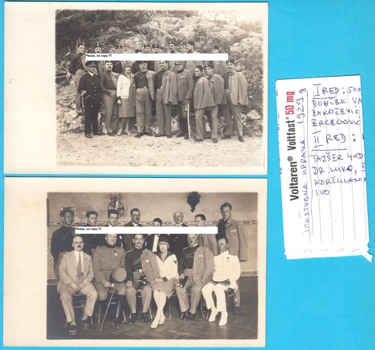 Uz razglednice dolazi i papirić “Društvena uprava 1929. g.” na kojem su redom napisana imenima svih osoba koje se nalaze na gornjoj razglednici.