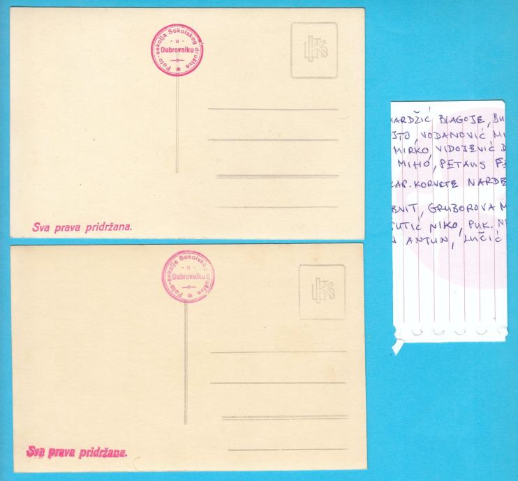 DUBROVNIK - UPRAVA SOKOLSKOG DRUŠTVA (1929) lot od 2 stare razglednice